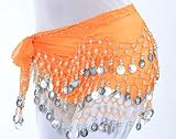 #3: Costume Danse Orientale Sequins argent, orange, Belly Dance Foulard Danse du Ventre Jupe
