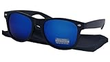 Lunettes de soleil style Wayfarer retro vintage 80's - Verres effet miroir bleu - Monture noir - Fashion tendance