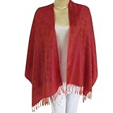 #7: Boutique indienne - Long foulard rouge et orange motifs floraux Cachemire - Écharpe style Bollywood pour femmes 50 x 182 cm