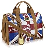 #4: Sac à main tendance "Fashion Only" Simili Cuir - Anse + Bandoulière - Motif Drapeau Anglais UK United Kingdom Façon Vintage - 41 cm x 33 cm